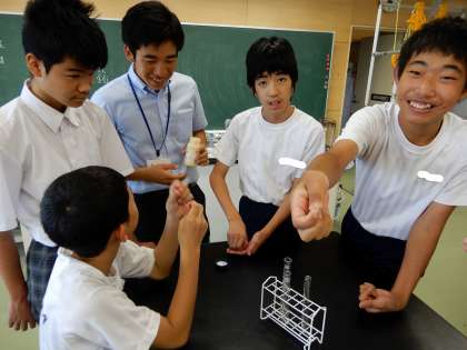 気体についての学習です。酸素、窒素、水素、二酸化炭素をどのようにして集めるのか実験していきます。