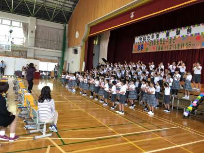 初志部合唱、ハッピーメロディから子どもたちの演奏が始まりました。