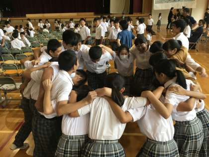そしてステージの部、オープニングセレモニーから始まり、自治会長 石原君の開会宣言、各学級が伝えたい思いを合唱や合奏にのせて届けてくれました。初志部は「明るく元気な歌声で、音楽を楽しみながらのびのびと表現してくれました」C,D組さんの「演奏メドレー」は、みんなで一つのことを作り上げる大切さを教えてくれました。立志部は「勢いのある歌声でバランスの良いハーモニー合唱でした」そして大志部は「曲想を生かして、歌からメッセージが伝わる合唱でした」さすが…。目頭が熱くなりました。どの学級も「心がこもった合奏、合唱、みなさんがつくりあげたハーモニー」は、見ているもの、聞いているものを一体化しました。9学年の持っている「一貫魂」が歌声となって体育館いっぱいに響き渡りました。午後の部は、力強い文化芸術部の黒潮太鼓、佐藤君の平和について考える「わたしの主張」、高城さんの海は宝物の「英語弁論」、8・9年生のさわやかな「ダンス」、県大会出場した吹奏楽部の素晴らしい演奏、発表に、9学年の絆がより一層深まりました。