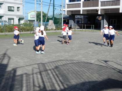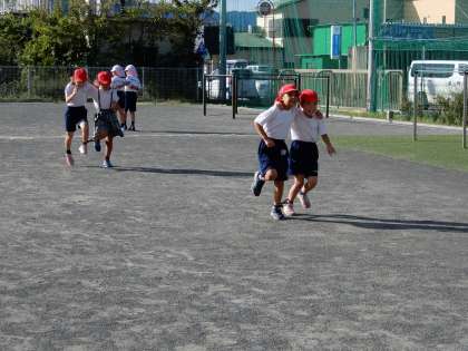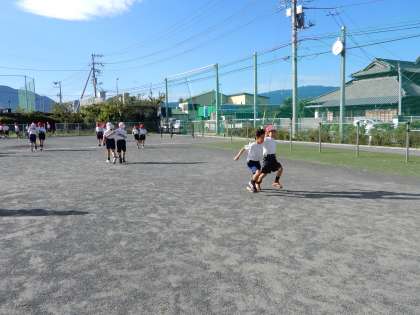 初志部種目の二人三脚の練習を2年生が「イチニ イチニ」と頑張っています。