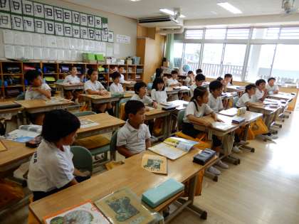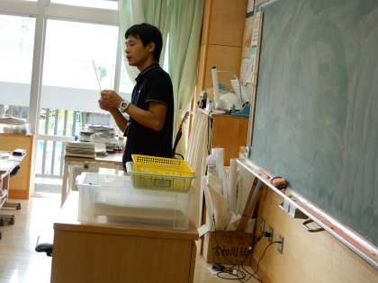 ひなたとひかげの学習です。ひなたとひかげで、地面の様子や土、水の暖まり方などの違いを調べていきます。そのために利用する温度計の使い方を説明しています。
