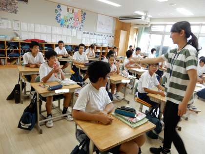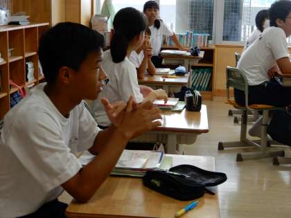 「12ヶ月」を英語で順に確認しています。クラス全員が英語で発音できるようになりました。