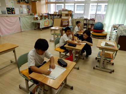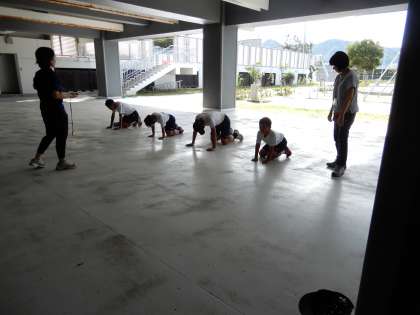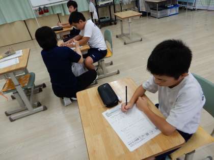国語の漢字の学習です。発達段階に応じて一つ一つ確認しながら学習しています。三枚目はランニングが終了し、これから筋トレです。