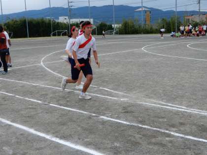 最後の9年生は200m一周走ります。さて当日は赤白どちらに勝利の女神がほほえむでしょうか。