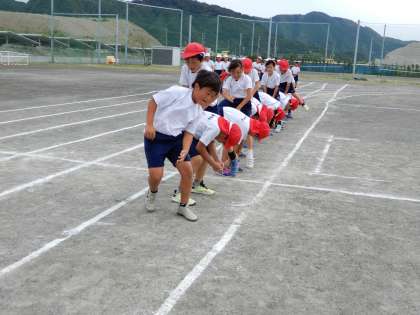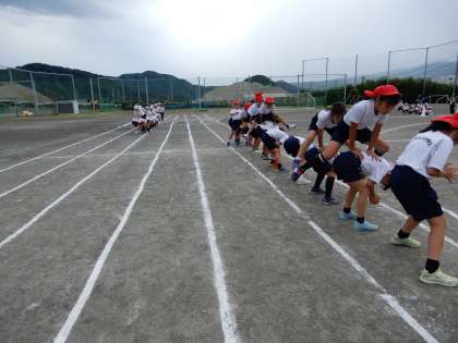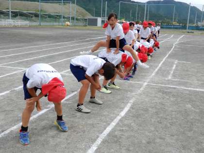 初志部種目のアンカーは、4年生です。4年生は紅白分かれて馬跳びです。