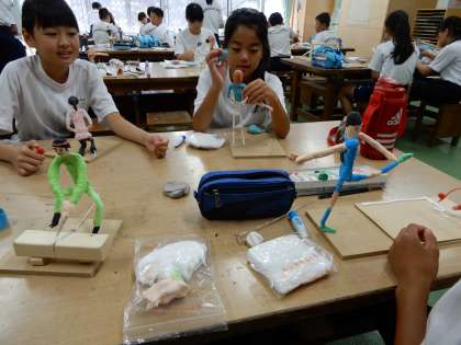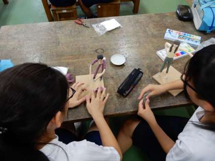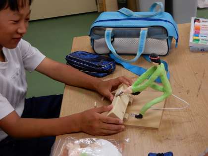 針金アートです。自分の将来の夢を作品にしています。大工、薬剤師、パティシエ、警察官など、上手に制作しています。みんな完成が楽しみです。