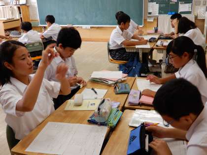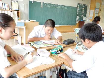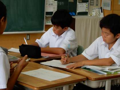 地理「暑い地域の暮らし」について学習しています。衣、食、住、その他に分類して調べていきます。