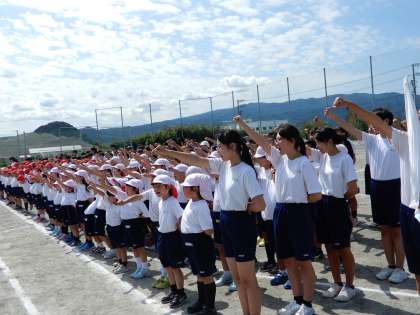 応援団の皆さんは、昼・放課後と練習を積み重ねてきました。ありがとうございます。たいへん立派な応援練習でした。体育祭当日もよろしくお願いします。