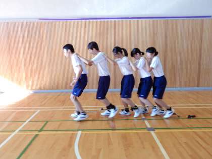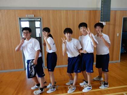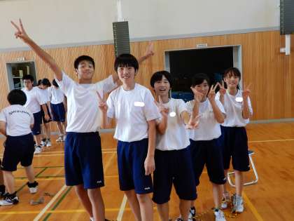体育館から「イチニ イチニ」と大きなかけ声が聞こえてきます。大志部種目の練習をしています。