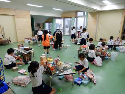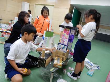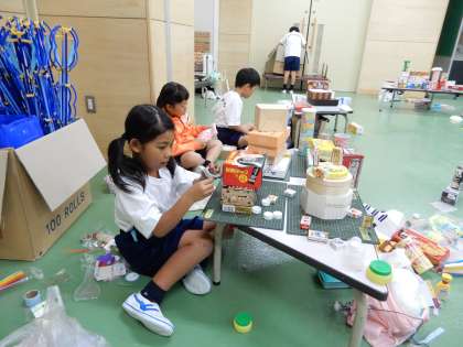 生活科室で、集めた箱でいろいろな物を作っています。自分の作りたい物、ロケットやタワー等々制作中です。完成が楽しみです。