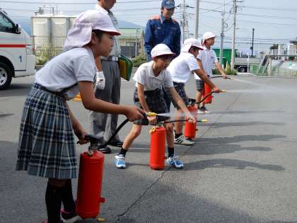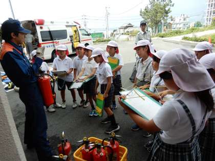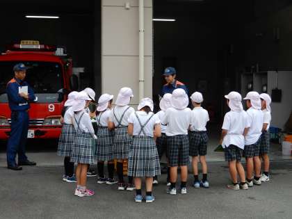 消防車、救急車の学習に沼津南消防署静浦分署を訪問しています。