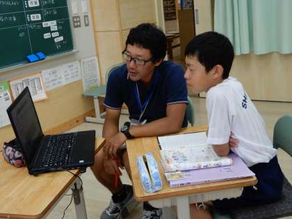 映像を活用して曜日や月などを発音しながら学習しています。
