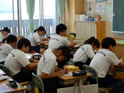 各自で前期のクラスパワーの項目について、振り返りをしています。9年生は、いよいよ正念場になります。受験は団体戦と言われますが、学級の中でお互いに励まし合って進路決定に向けて頑張っていきましょう。