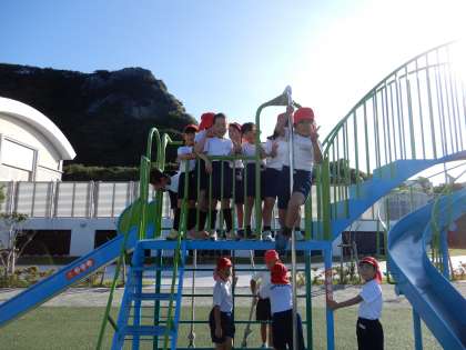 初志部の子供たちは、秋晴れの中、朝トレを楽しんでいます。先生方もありがとうございます。