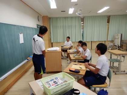 学習の約束をもう一度確認しています。三枚目は日生の授業で、マラソンと体幹トレーニング後の清掃の様子です。いつもありがとうございます。
