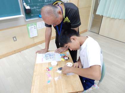 アイロンビーズの作業です。かなり細かい手作業ですが、頑張っています。