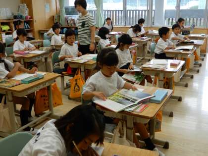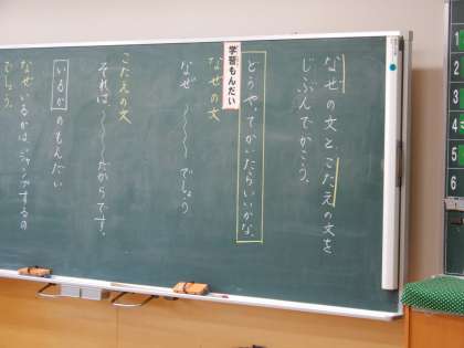 なぜの文と答えの文を自分で書こう。本を読んでワークシートに書いていきます。