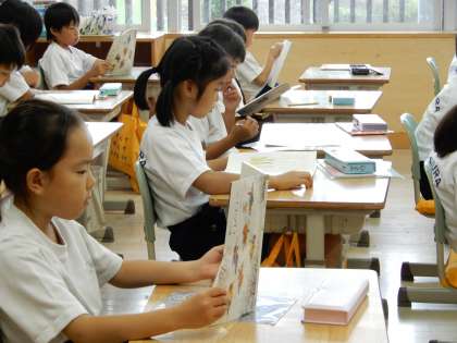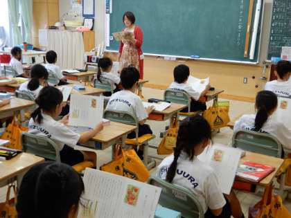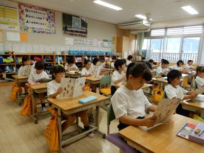 「食べるのはどこ」みんなで声に出して音読をしています。正しく読むこと大切です。