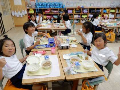 台風19号の影響もなく給食が食べられることに感謝したいと思います。いつも栄養のバランスの採れた美味しい給食をありがとうございます。