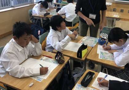 6Aの読解の授業では、間近に迫っている東京研修旅行のミッションが発令されました。研修旅行で訪れる場所で、各班ごとに10種類以上の職業の方にインタビューするそうです。着々と研修旅行に向けて準備が進んでいます。