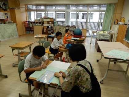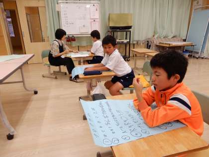 画用紙に、自分の役割分担の説明を書いています。分かりやすく大きく書きました。