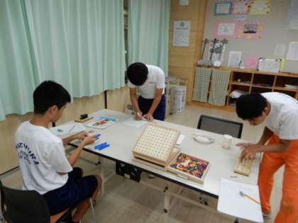 手先の作業訓練です。1分間で作業をローテーションしていきます。連合音楽会の疲れもなく集中して頑張っています。