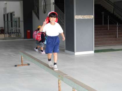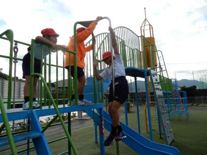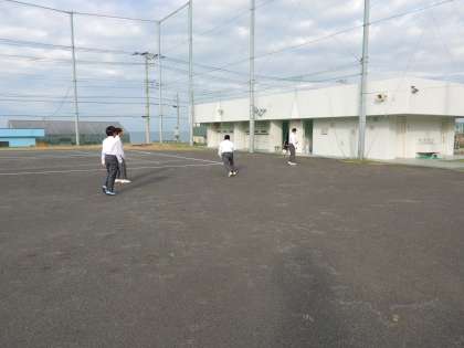 朝の運動として、初志部は朝トレ、6年生はボール遊びです。
