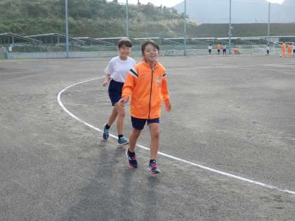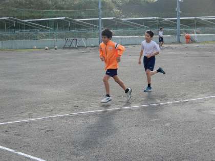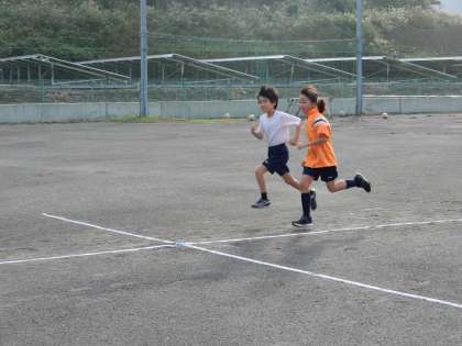 5年生はトラックをランニングしています。8周走った子供もいます。頑張っていますね。