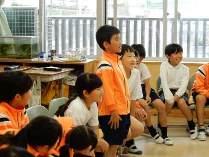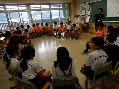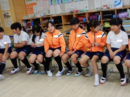 後期に入りました。クラスパワーをみんなで確認しています。5つの項目は「あいさつ、リーダー力、時間を守る、授業準備、みんなの話」です。反省から重点を自分たちで決めていきます。初志部リーダー頑張っています。