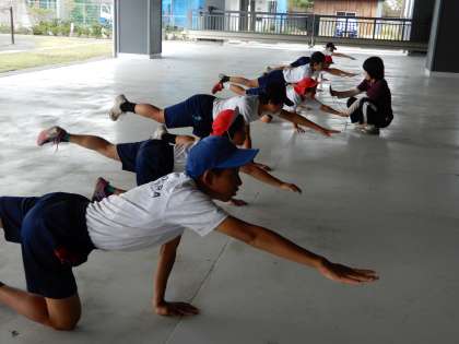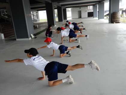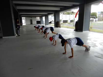 1時間目の日生の様子です。マラソン後に、体幹トレーニングです。継続は力なりです。毎日のトレーニングで確実に体の筋力も成長しています。
