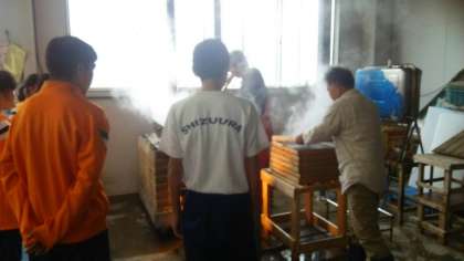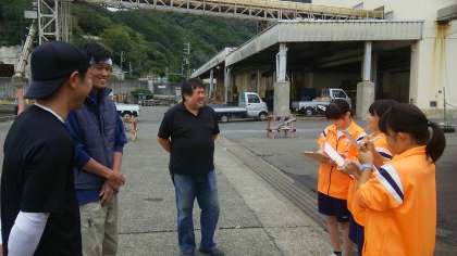 8年生は、「静浦の魅力は何だろうか?」をテーマに、校区の魅力ある場所で取材を行いました。静浦漁港では、漁師の方、組合長様、釣り人にインタビューしました。ちょうど、シラスの競りが行われていたので、生ジラスや釜揚げシラスもいただきました。取材では、魅力だけではなく、厳しい現状についても話をしていただきました。
