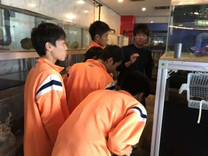 ブルーコーナーでは、ここは世界各国からきた魚の休憩所であり、静浦の海の水質が安定して良いからこそ、旅をしてストレスがたまっている魚の休憩所になることができるという話を聞いてきました。