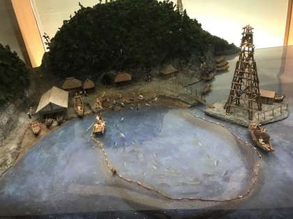 建切り漁は、リアス式の地形とマグロの性質を利用し、網を段階的に仕掛けて追い込んでいく漁法です。その方式以上に、静浦でマグロが採れていたことは大きな驚きでした。マグロの群れが来たことは、ローフーという機具を用いて知らされたそうです。そのため、午後はローフー体験をさせていただく予定です。