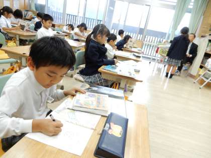 担任不在のため、ワークの学習と読書です。みんな頑張っていますね。