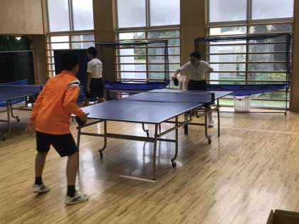 卓球部は市スポーツ祭に向け、試合形式での練習です。