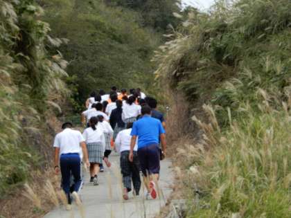 予告なしで登校時に地震が起きた場合を想定した避難訓練を実施しました。時間は7時45分です。