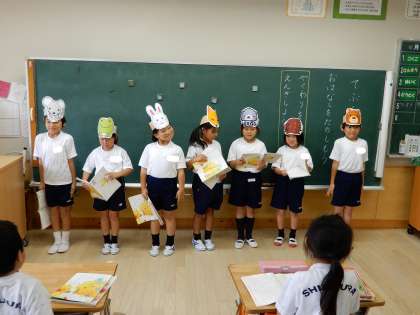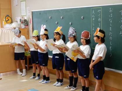 てぶくろの内容を深めていきます。役割を決めて演技をしながらお話を楽しみます。みんな上手に読めました。
