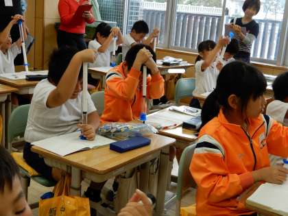 4A理科 単元「閉じ込めた空気と水」について河村先生の校内研修授業です。