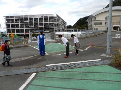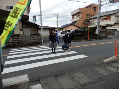 沼津警察署交通指導員の方が、登校の見守りに来てくれました。ありがとうございます。