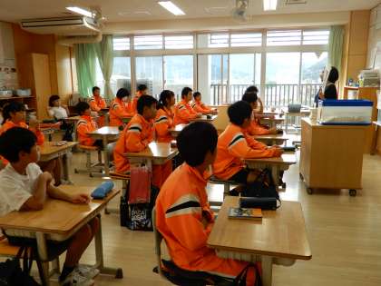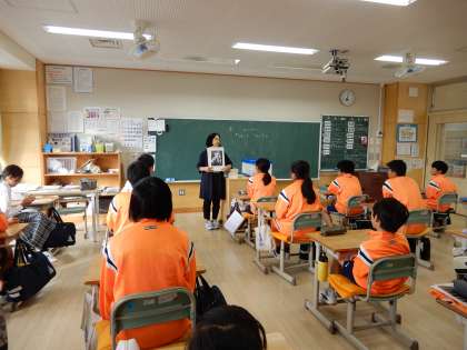 4Aと7Bの読書の時間の様子です。7Bは学校司書の中村先生が、ブックトークをしてくれています。