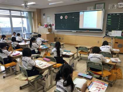1Aの数学では、繰り上がりの練習を兼ねて2桁になる足し算の練習をしています。足して10になる数字の組み合わせを考えながら取り組んでいます。