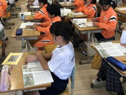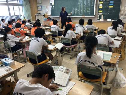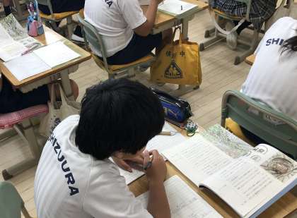 5Aの国語では、“トロッコ電車で行く黒部きょうこく”を題材にして、紀行文を学んでいます。