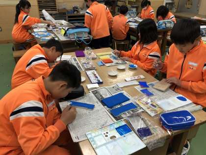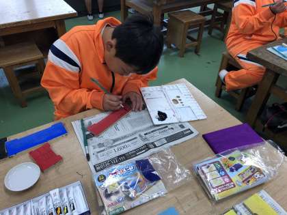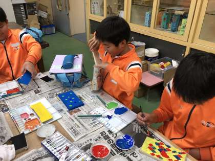 6Aの図工では、オルゴールづくりをしています。本日はアクリル絵の具を使って、オルゴール箱の色つけをしています。