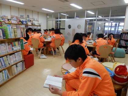 6Aの朝読書の様子です。本日は2階図書館使用日です。開校から6年、確実に成長しています。