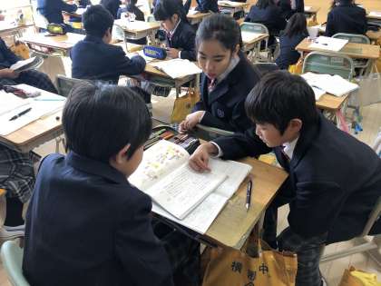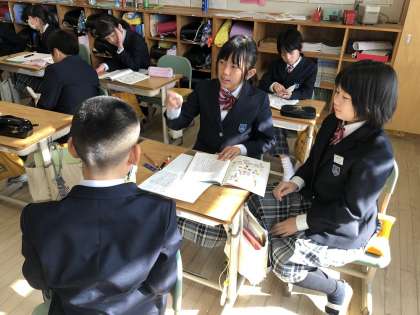 5Aの国語では、メディアリテラシーについて学んでいます。今日の授業では、説明文の中で、筆者の主張を考えることで“まとめ”の部分がわかるということを学びました。説明文の解釈はなかなか難しく、ことばに着目しながらたくさんの意見を出し合っていました。