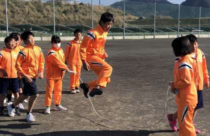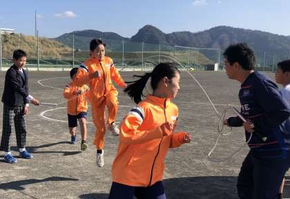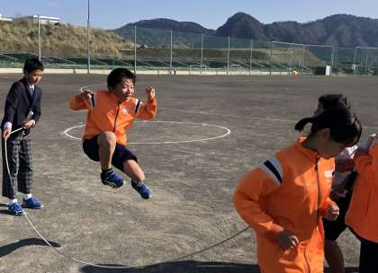 6Aの学活では、静岡県体力アップコンテストに参加するために、大縄(八の字)に挑戦しています。3分間で何回飛べるかを競うコンテストで、今日はその初日になります。縄の回し方や飛ぶタイミングなど、学級で話をしながら取り組んでいました。新記録を目指してがんばってください。