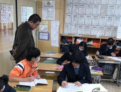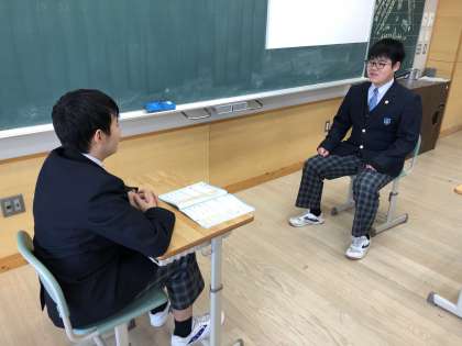 9Aの学活では、受験対策として面接練習に取り組んでいました。面接試験に不安がある生徒は、集団面接や個人面接を何度も繰り返し取り組んでいました。教室では、受験に向けて教え合い学習をしている生徒もいて、いよいよ受験モードが高まってきています。
