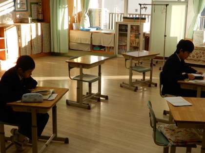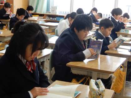 中C,中D、5Aの朝読書の時間です。中CDは明日受験の生徒もいます。緊張感を楽しむくらいに頑張ってきてください。
