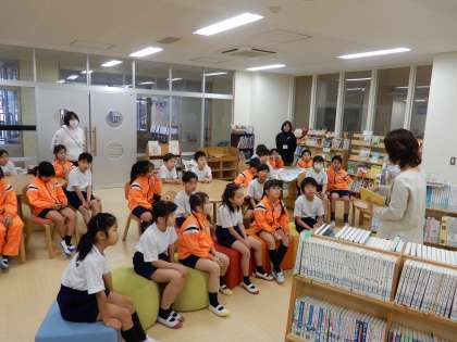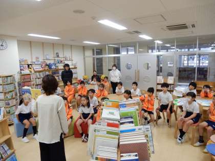中山先生のブックトークです。2Aの子供たちは「番ねずみのやかちゃん」「スイミー」「としょかんねずみ」「アレクサンダとぜんまいねずみ」などの本を紹介してもらいました。中山先生たいへん楽しいブックトークありがとうございました。
