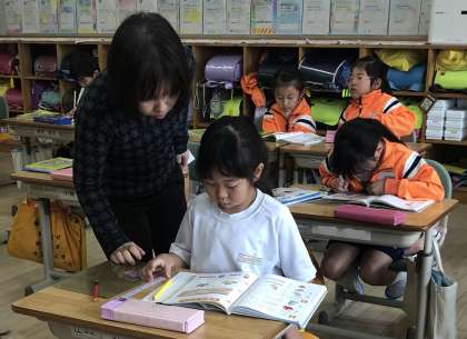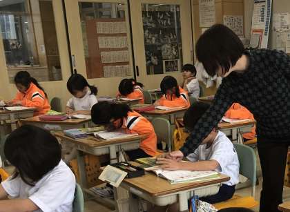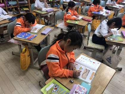 1Aの算数では、“かさくらべ”の課題の中で、様々な数や量を比べる学習をしています。同じ大きさで形が一緒であるものを単位として、計算する方法に取り組んでいます。